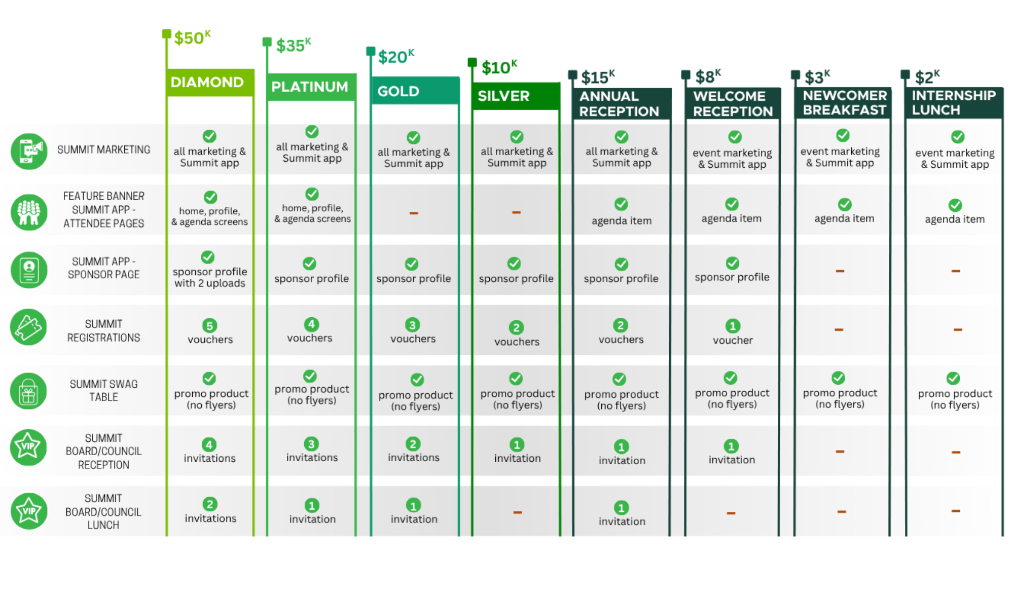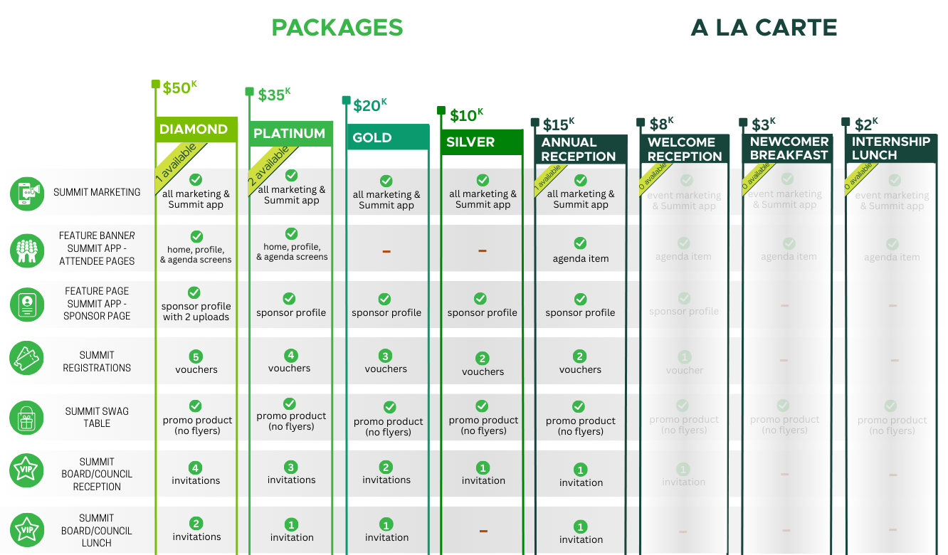 All sponsorships have one spot available unless otherwise noted.